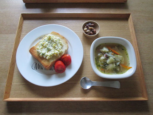 おみそ汁(人参、玉ねぎ、あげ、オクラ)