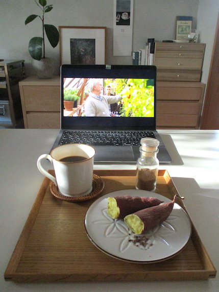 焼いた 焼き芋を オヤツに