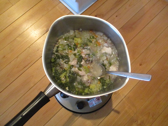 ストーブで 夕ごはんを作りました